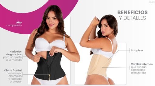 Con los materiales alta calidad, permiten que el Chaleco Cinturilla se mantenga bien colocado sin lastimar la piel. Sus varillas semi flexibles mantienen la postura y evitan encajarse en el cuerpo.